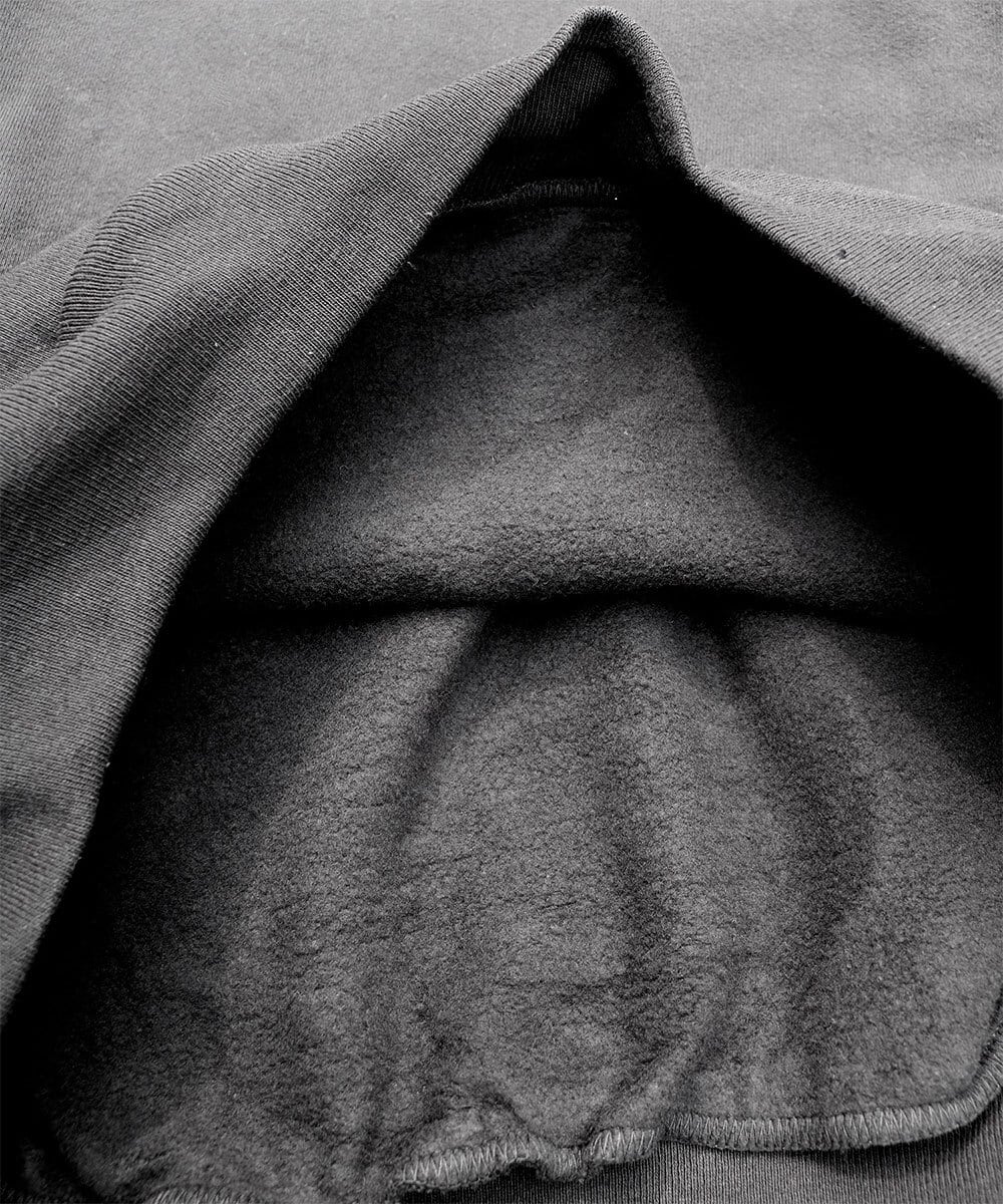 フードは2枚仕立ての肉厚でドローコードのないプレーンなデザイン。